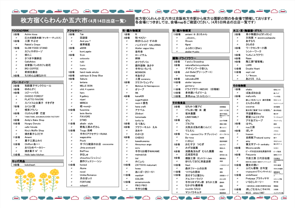冒頭でご紹介したお店map(出店一覧)と当日のお買い物にご活用ください。