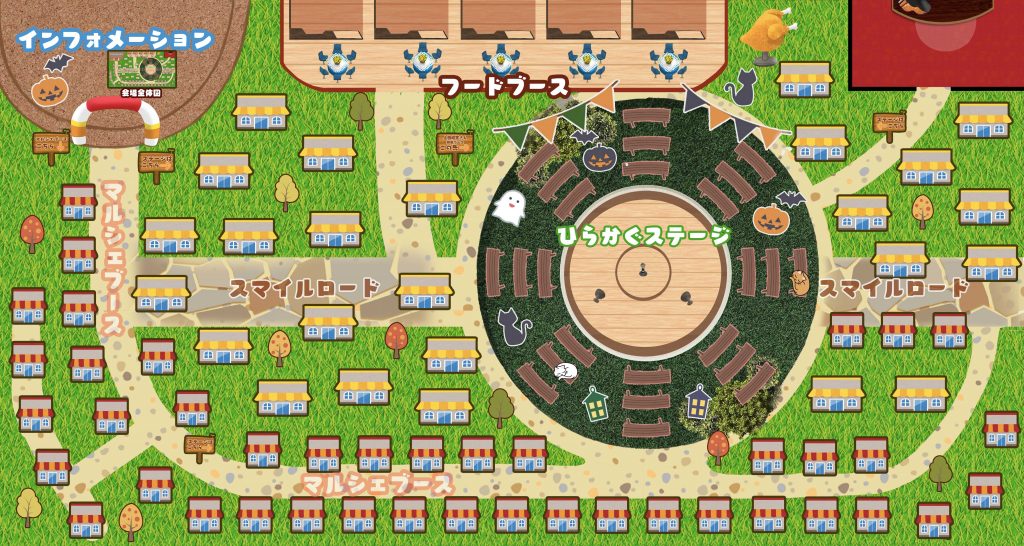 アイコンを移動させてオンラインショップを覗いてみたり、出店者さんとお話をしてみたり、ステージやデリバリーフードを楽しんだり…楽しみ方は十人十色!