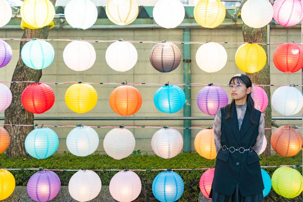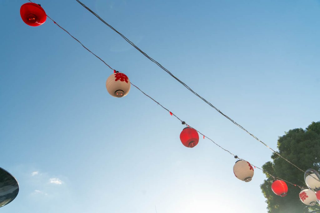 市役所と市役所のあいだ、ふれあいどおりのセブイレ手前あたりにはフォトスポットの提灯エリアが。
