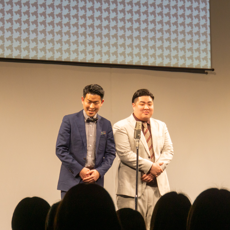 左のまついさんは交野出身の枚方育ち。交野市立第三中学校→枚方高校出身。