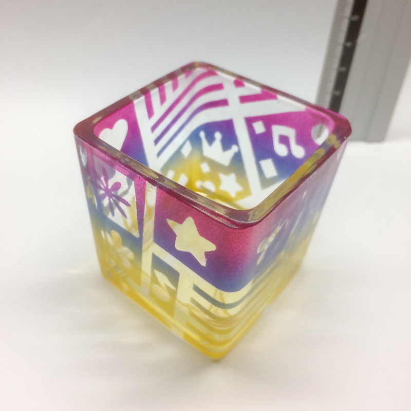 綺麗なグラデーションで模様付けしたガラス容器を販売します♪