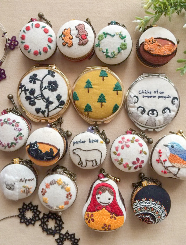 刺繍入りマカロンポーチとタティングレースのアクセサリー