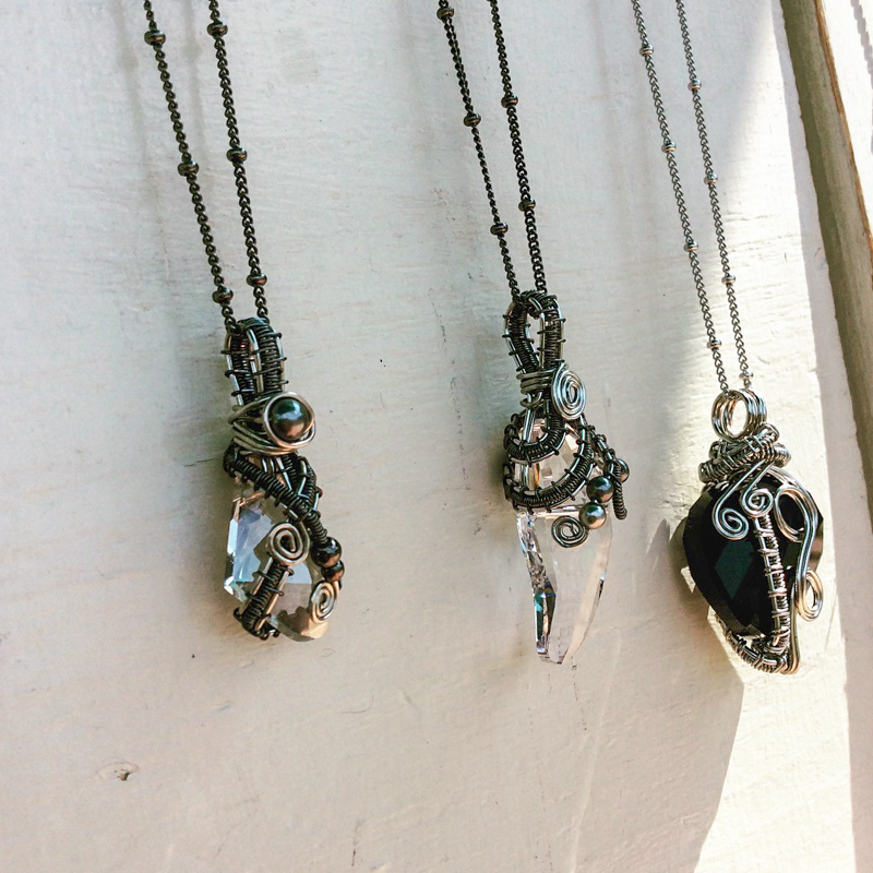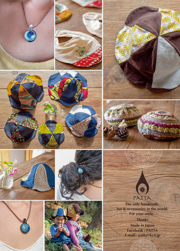 帽子、ガラスアクセサリーなど全てハンドメイドで作っています。