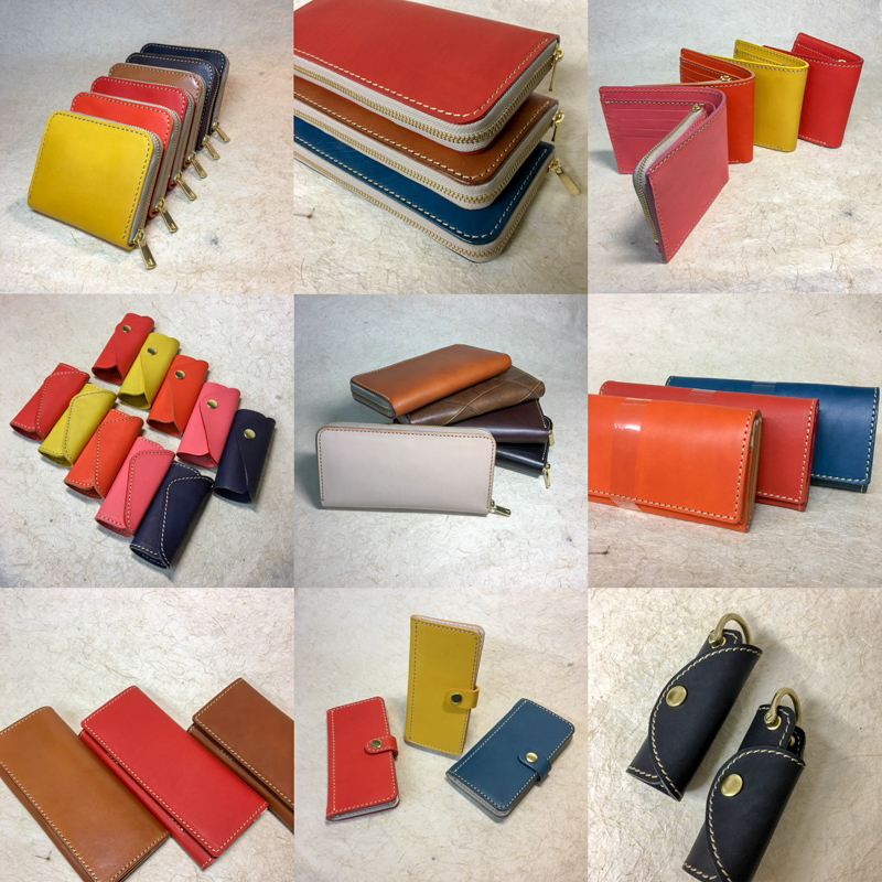太い糸のステッチが特徴、ヌメ革、グローブ革で作った財布や革小物を是非ご覧下さい!
