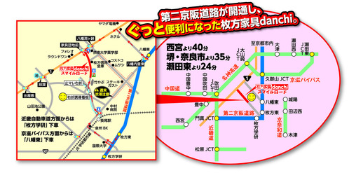 個性豊かな19店舗の家具専門店が集まっている枚方家具団地に、2025年新名神高速道路が開通予定。