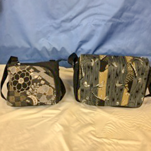 色々な和柄生地と酒袋はん布を合わせたパッチワークバッグ。