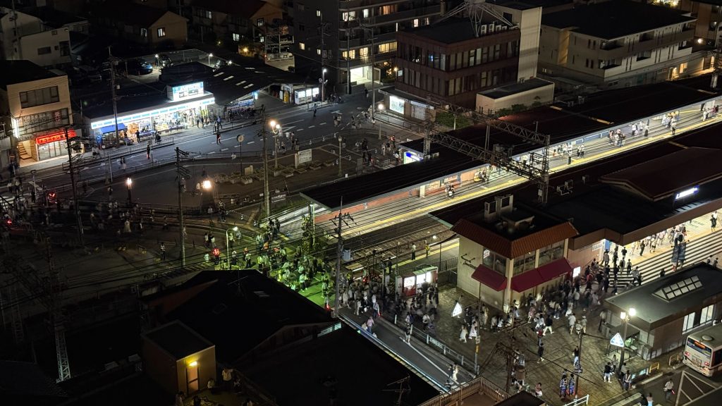 上記は花火前の枚方公園駅とおそらく高槻会場あたりまでうつっている写真。会場らへんの人はやっぱりこう見てもすごいですね〜!