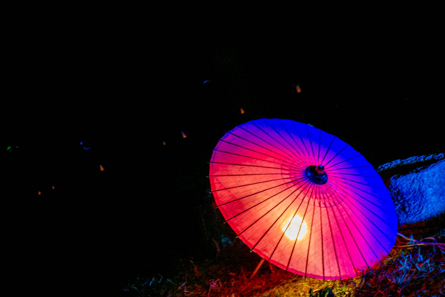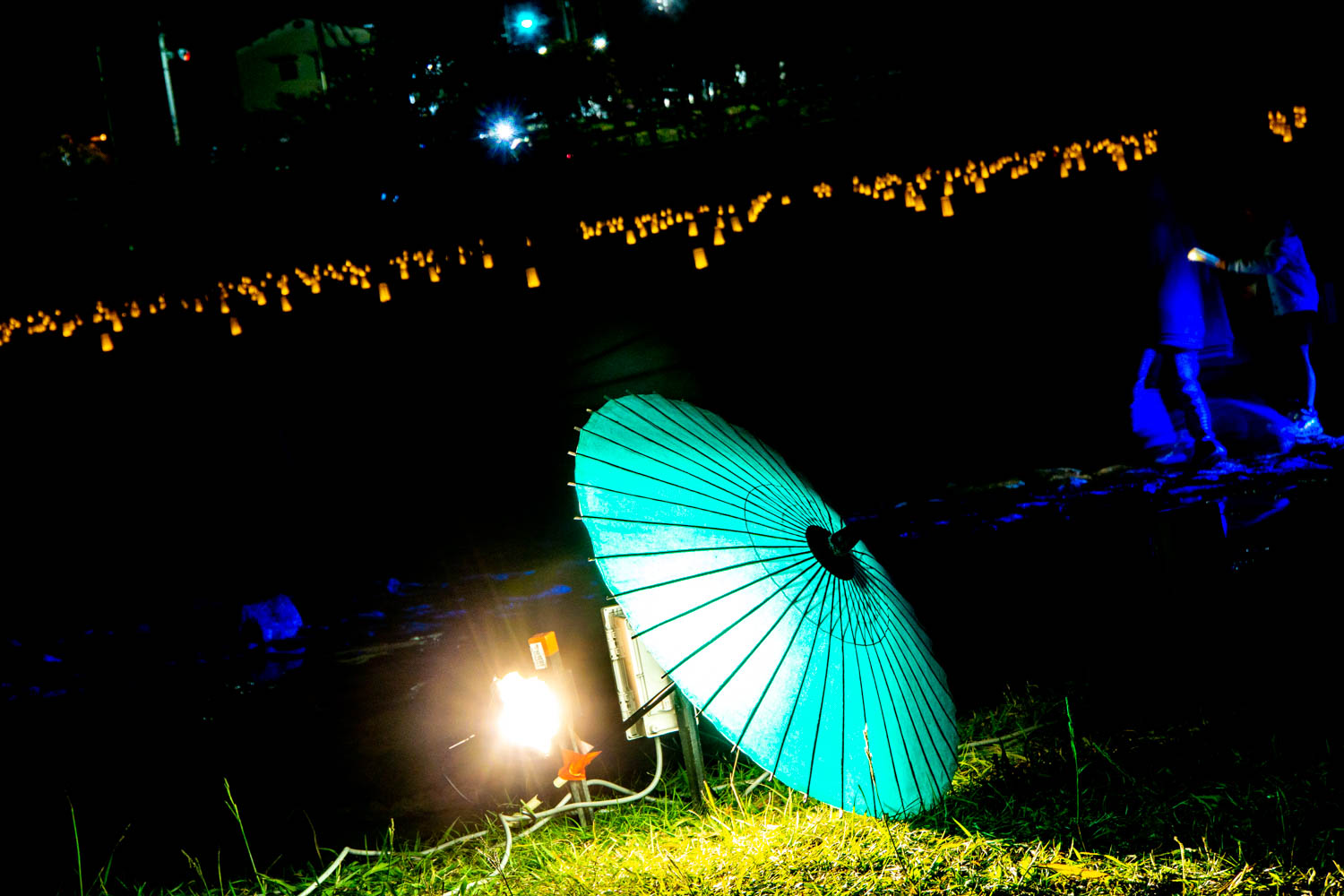 水辺はランタンと和傘が上手く配置されていまして、幻想的。