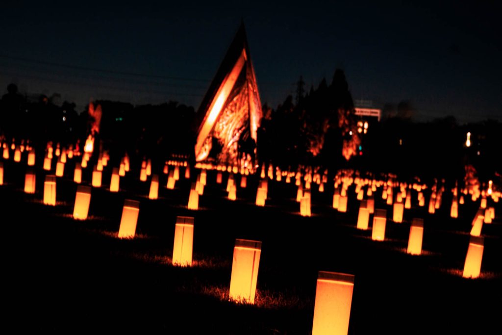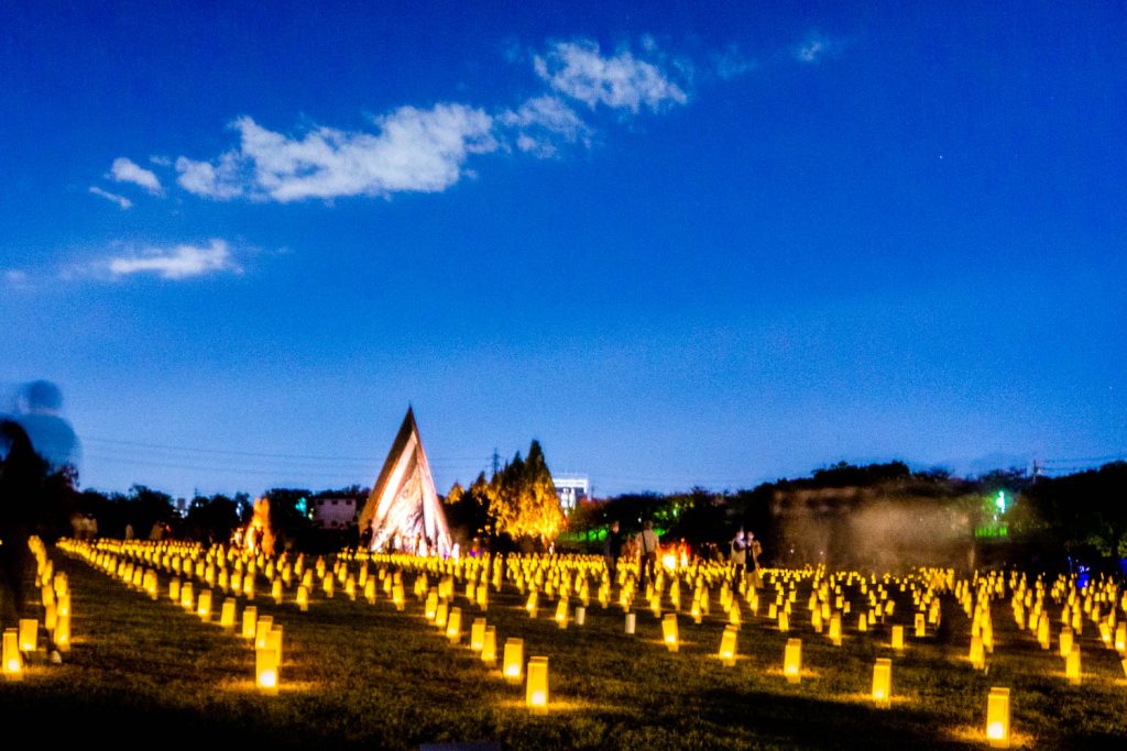 打上川治水緑地の中央の芝生広場はランタンでいっぱい!