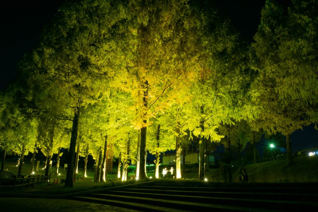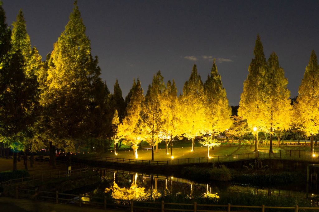 大きなメタセコイアがライトアップされ、いつもと違う表情を見せてくれています。