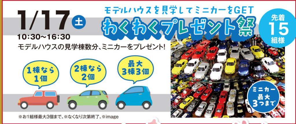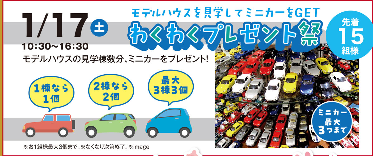モデルハウスの見学棟数分、ミニカーをプレゼント!(最大3個まで)