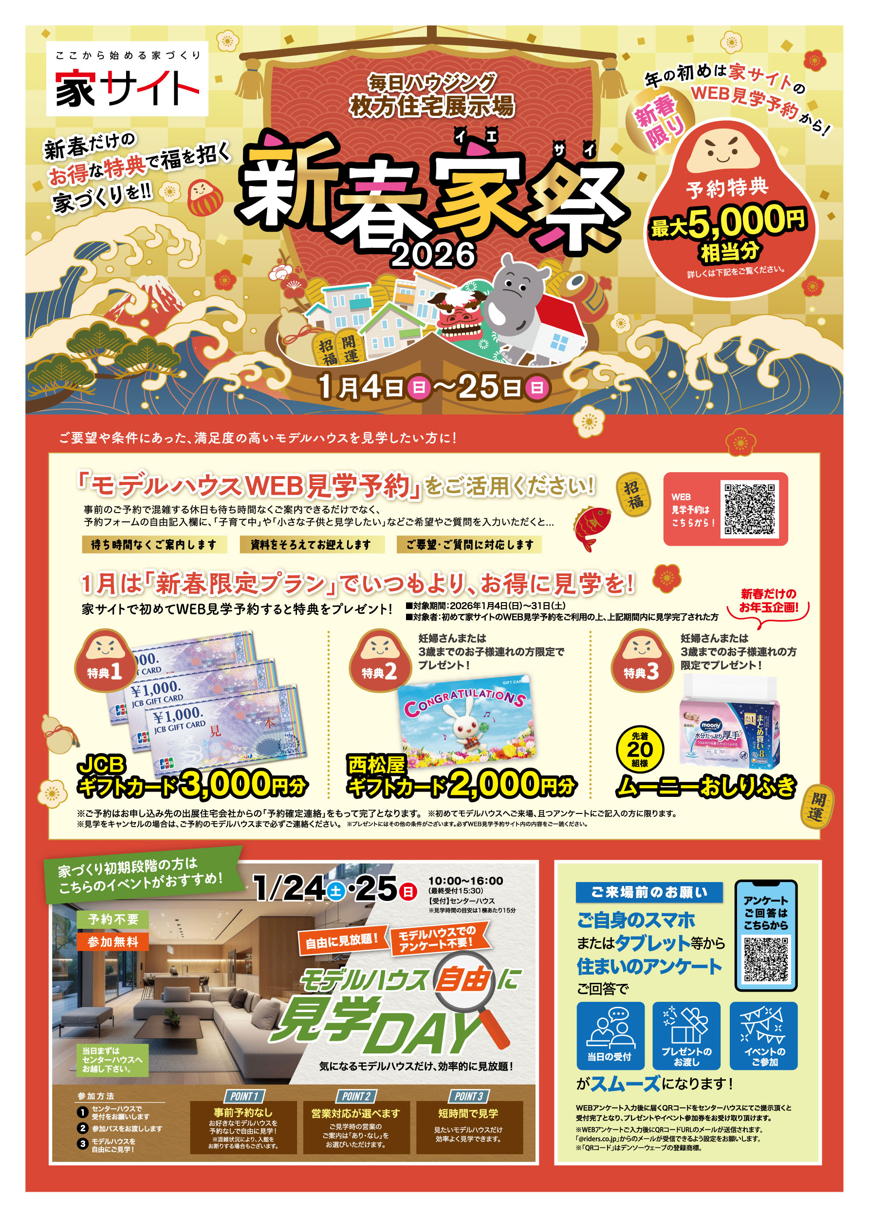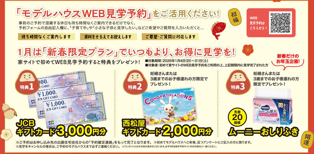 1/4(日)〜31(土)までに家サイトで初めてWEB見学予約するとプレゼントが!
