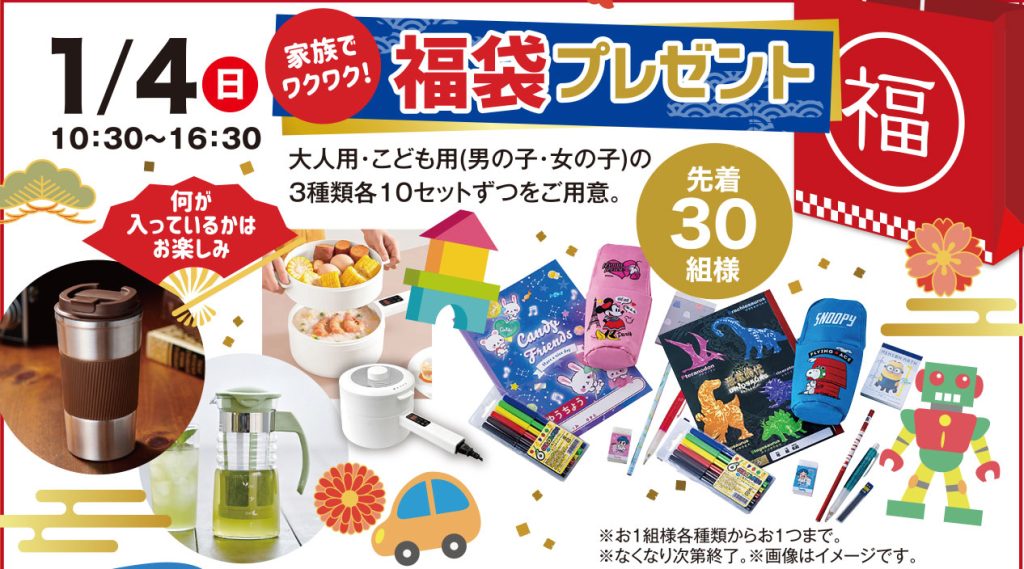 先着30組様に福袋をプレゼントします。何が入ってるかはお楽しみ♪
