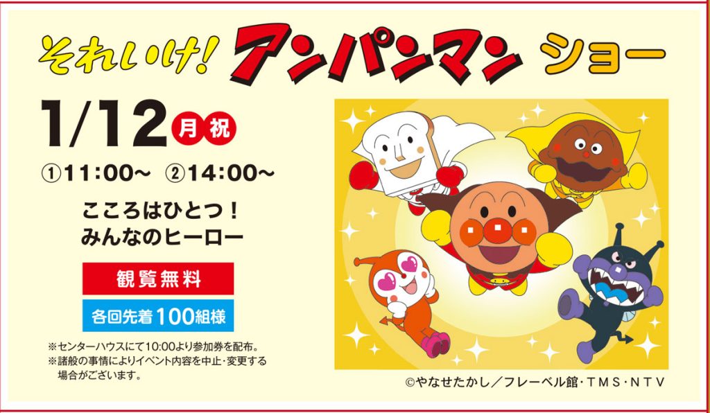 4日(日)には福袋をプレゼント!12日(月・祝)にはアンパンマン ショーもありますよー♪