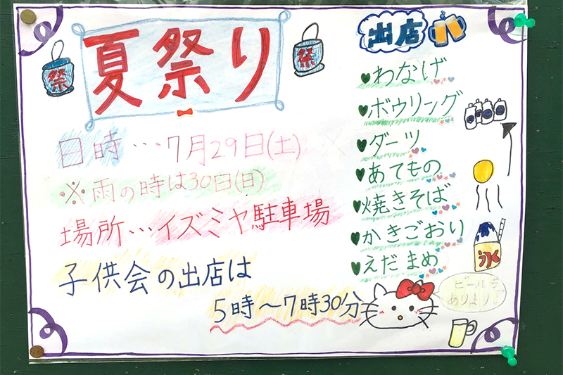 なつまつり40周年 | 伊加賀栄町公園 →地図 →張り紙 2日目はバザーも |