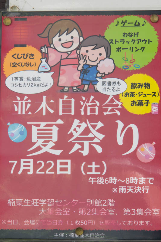 並木自治会 夏祭り | くずは生涯学習市民センター →地図 →張り紙 |