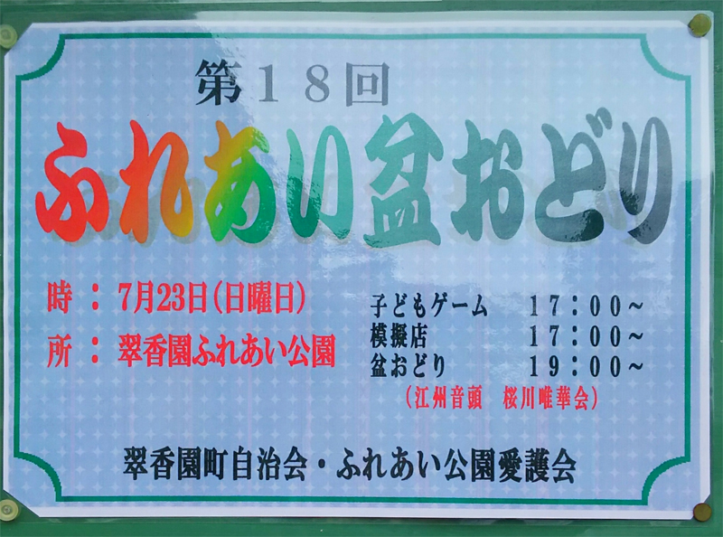 ※今年は香里園協和会 納涼盆踊り大会と北谷川公園の納涼夏祭りは行われないそうです。