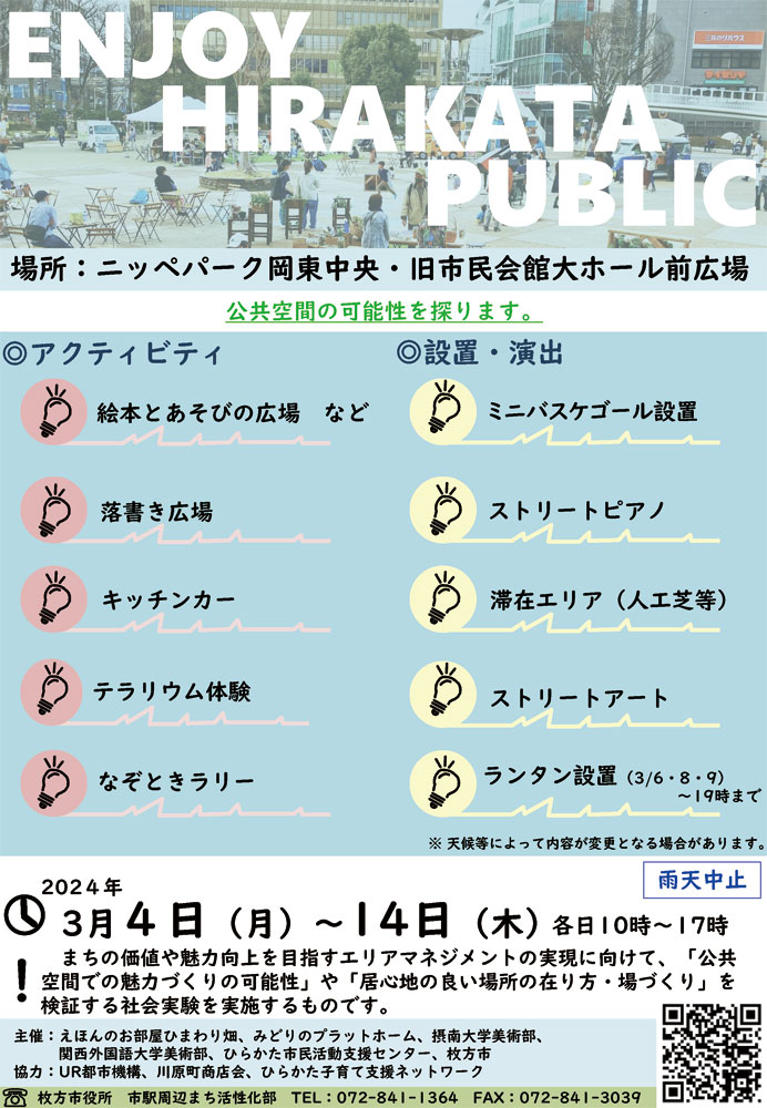 ニッペパーク岡東中央で「ENJOY HIRAKATA PUBLIC」という社会実験が行われています。