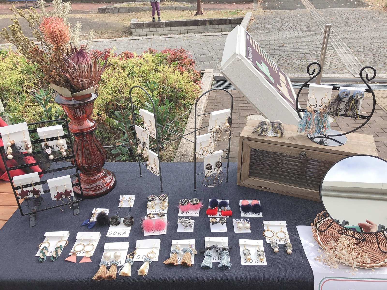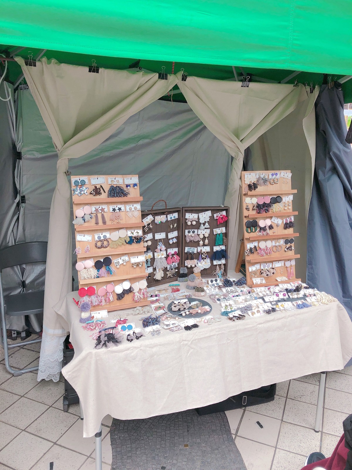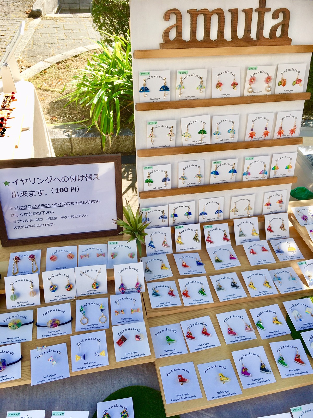 金属アレルギーの方でもつけて頂けるピアスとイヤリングを製作しています。ペットグッズはリボンや、わんちゃんが喜ぶおやつなどご用意しています。