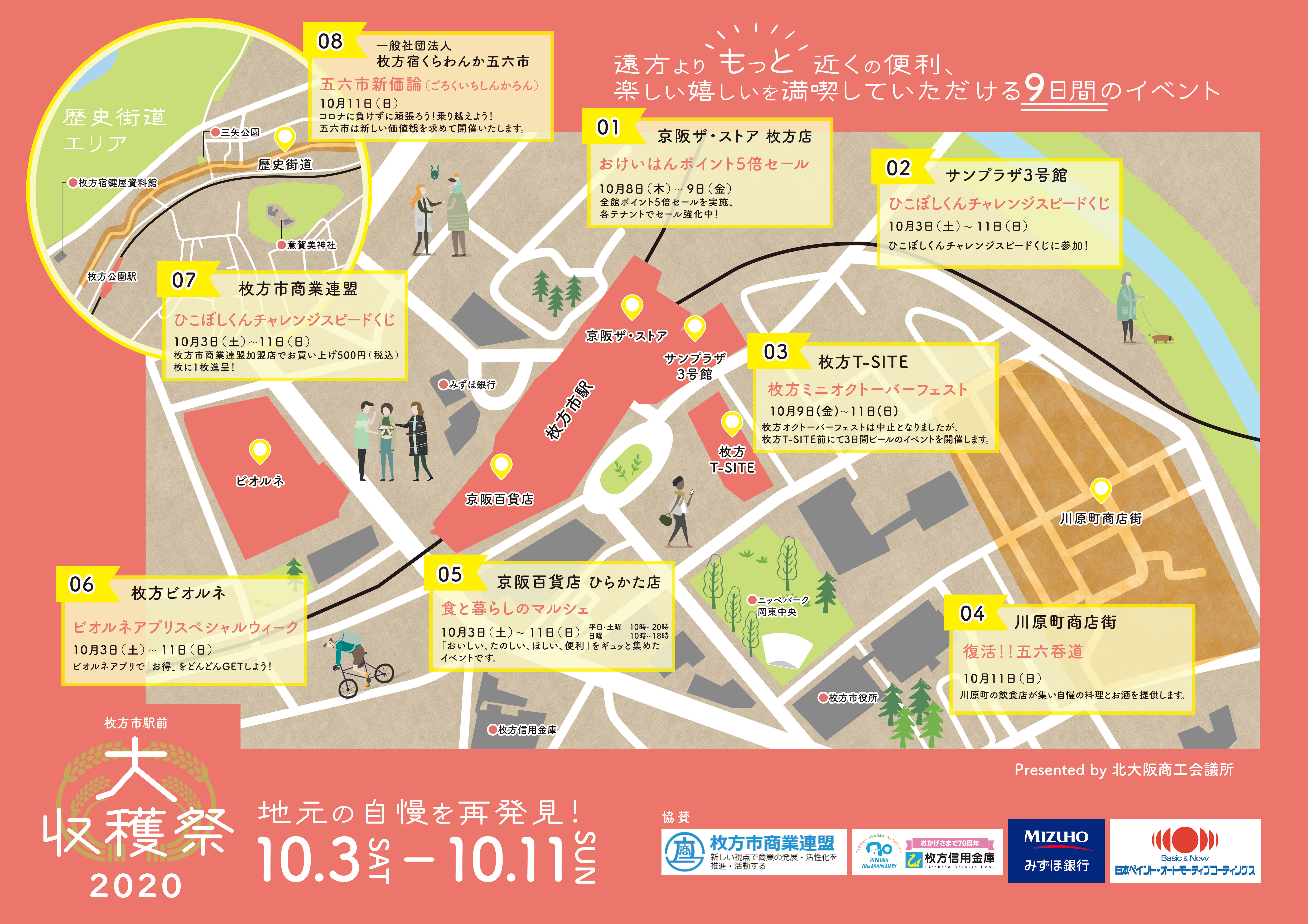 ガイドマップは枚方市駅周辺で配布されており、五六市当日は本部受付でも配布予定