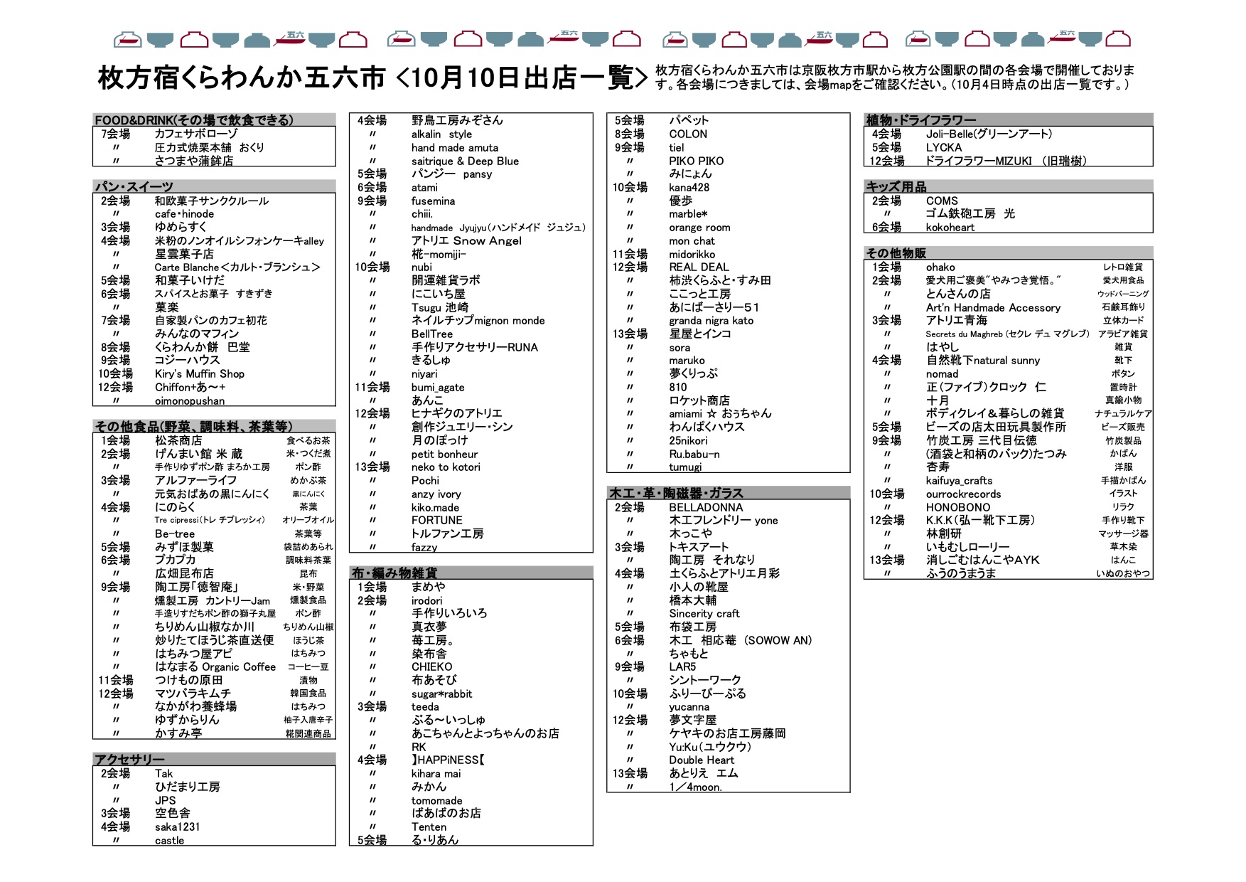 ↓10/10の出店一覧やイベント情報。(クリックで拡大)