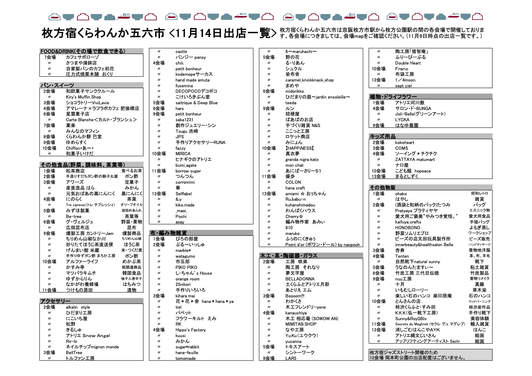 ↓11/14の出店一覧やイベント情報。(クリックで拡大)