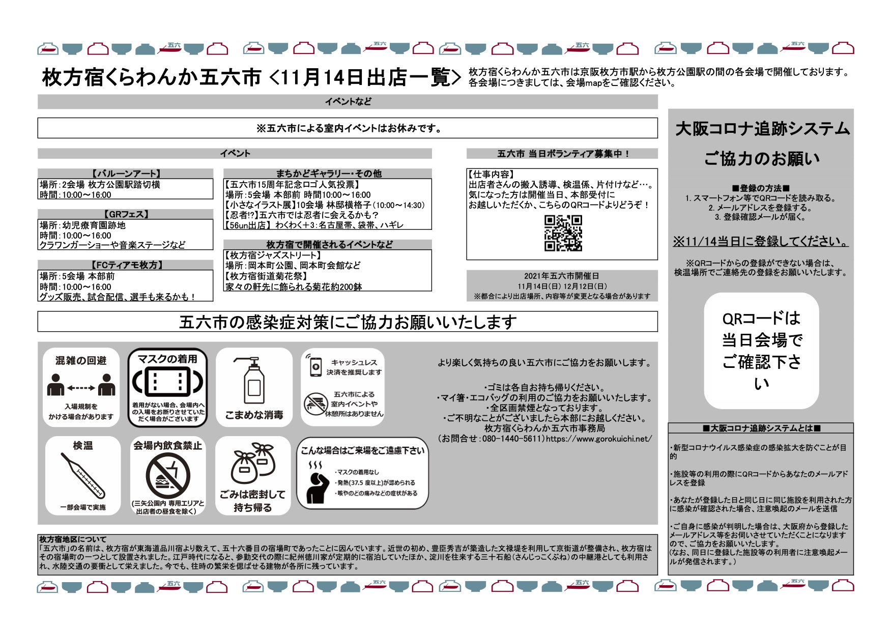 11月14日(日)は枚方宿くらわんか五六市の開催日です!