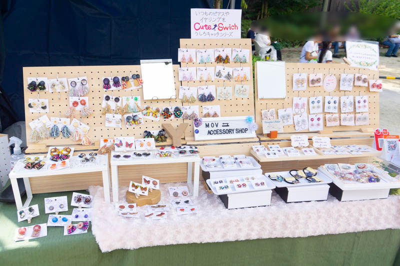 こちらのお店ではピアスやつまみ細工で作られたかんざしなど販売しています。