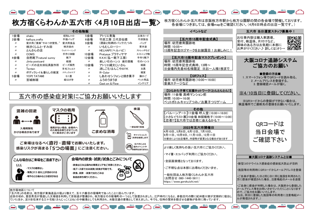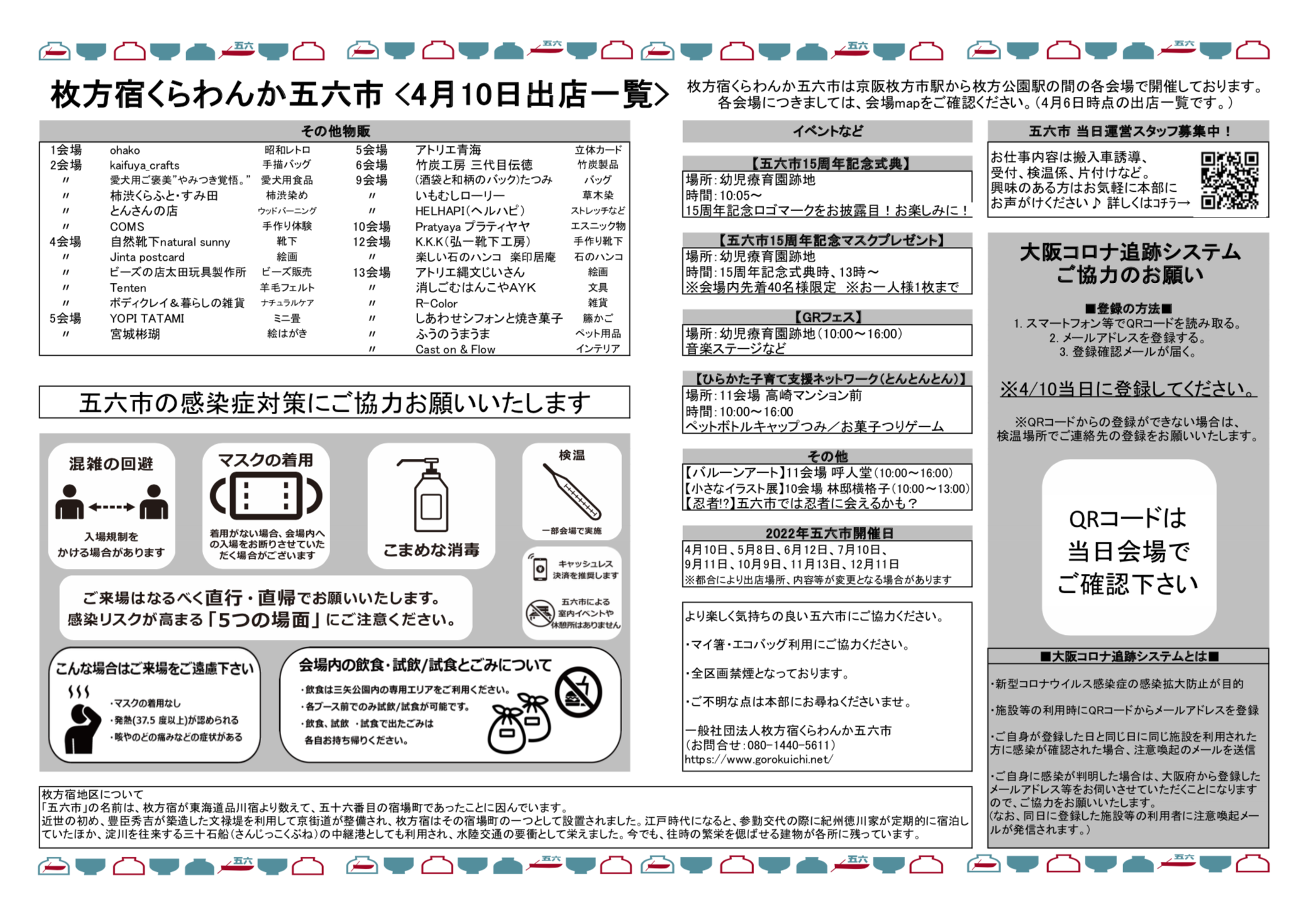 4月10日(日)は枚方宿くらわんか五六市の開催日です!