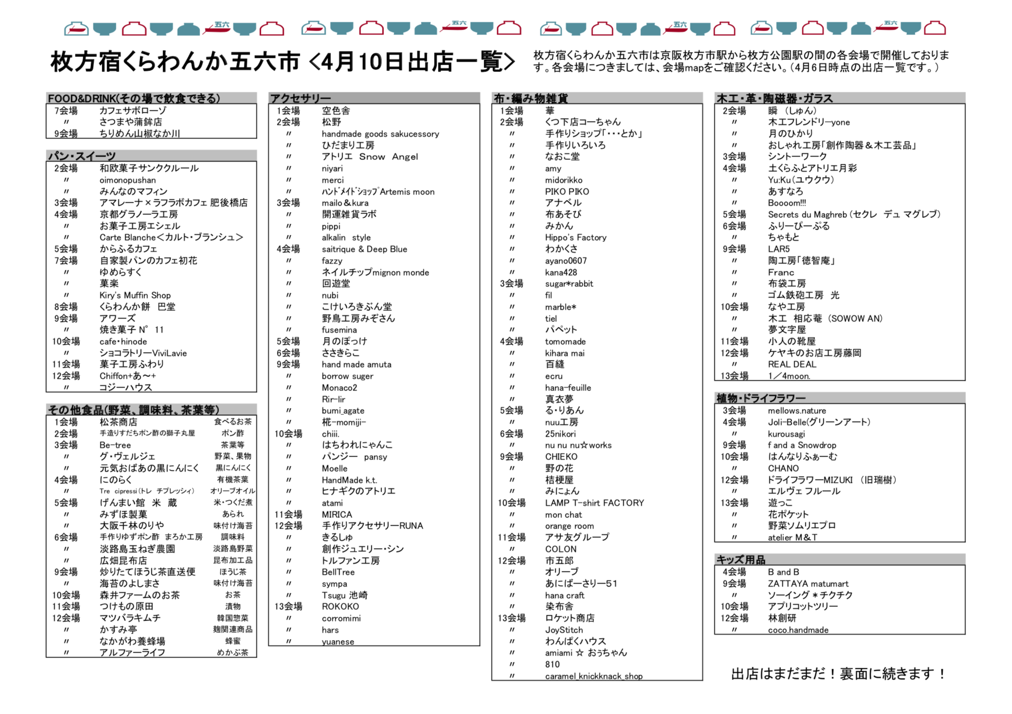 冒頭でご紹介したお店map(出店一覧)とあわせて当日のお買い物にご活用ください。