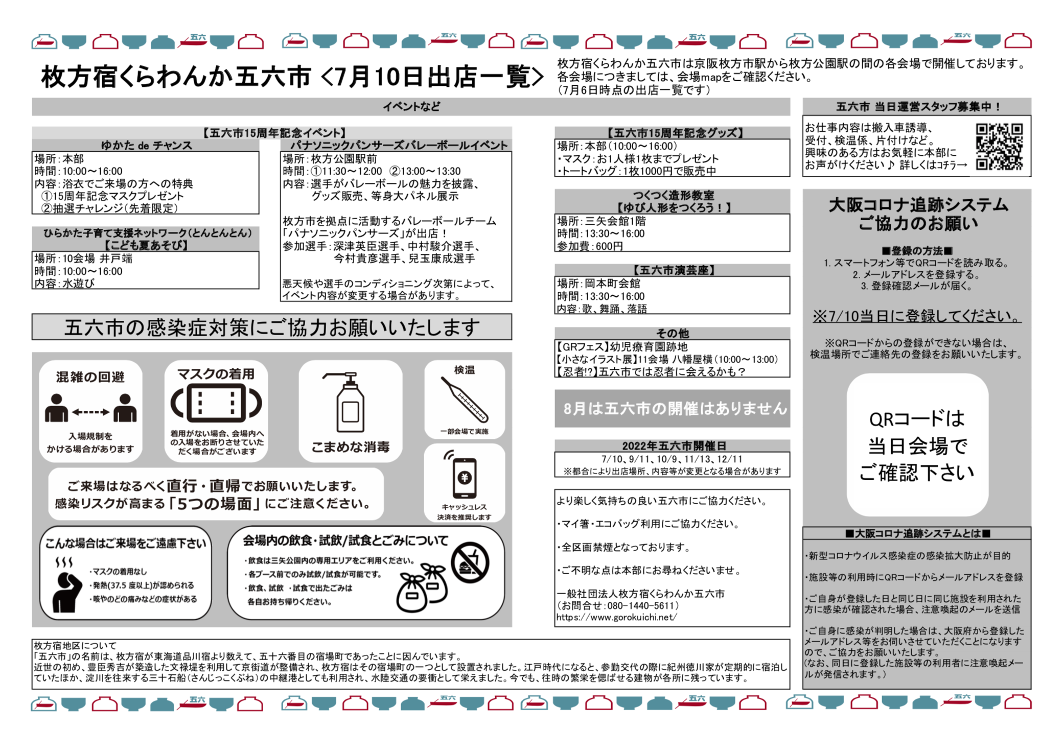 7月10日(日)は枚方宿くらわんか五六市の開催日です!