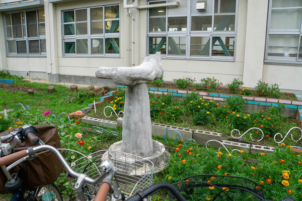 進んでいくと、おっとこれはなんだろう。外で料理する場所かなー。磯島小学校出身の方は分かりますか?