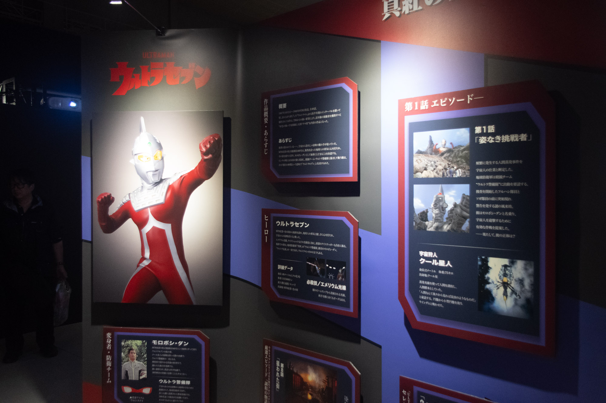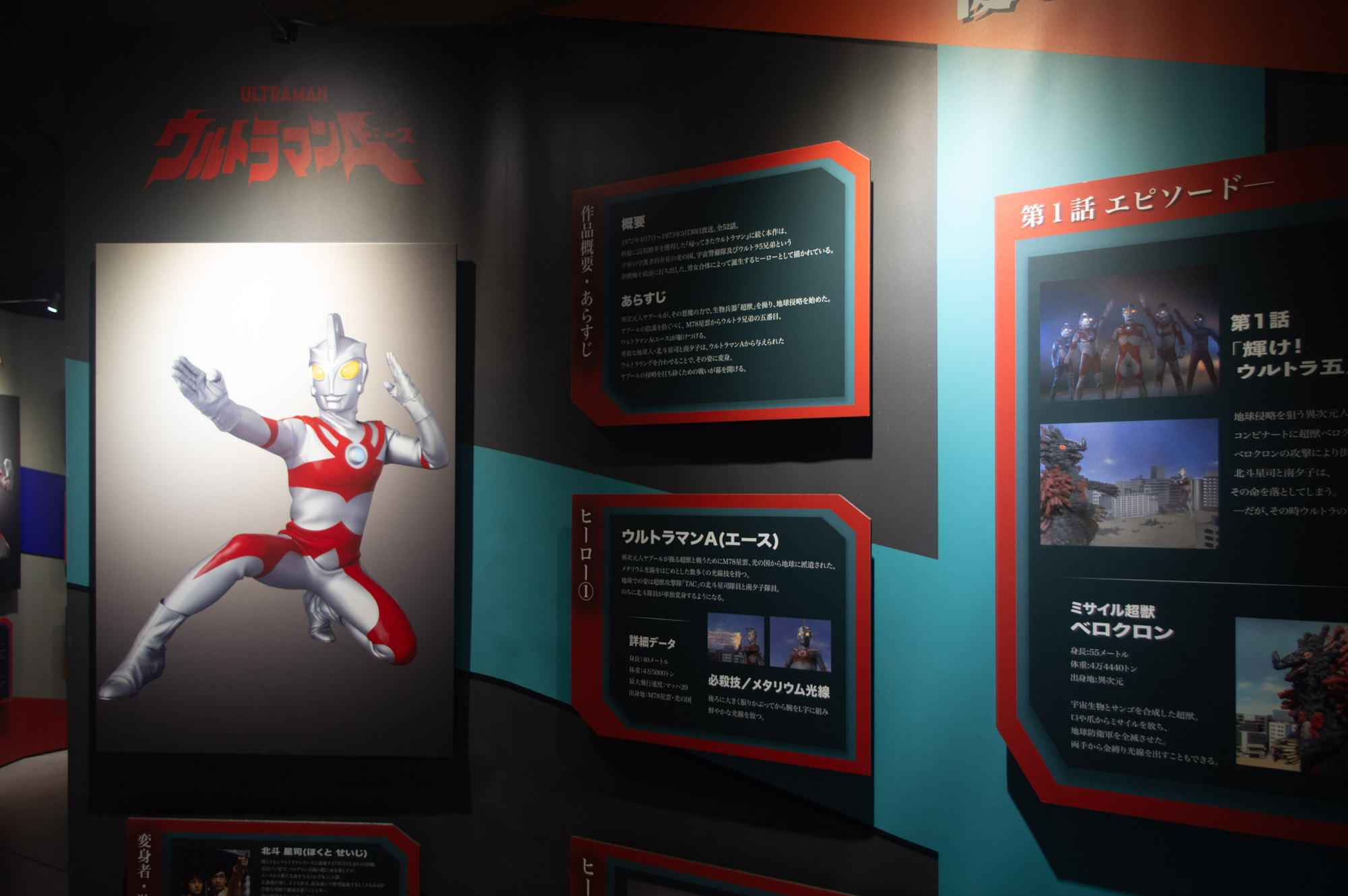 ちなみに、ここで紹介されているニュージェネのウルトラマンの横には「宿敵」を紹介するパネルも並んでいまして、大体は最終回あたりで死闘を繰り広げる「ラスボス」たちが紹介されているのですが……。
