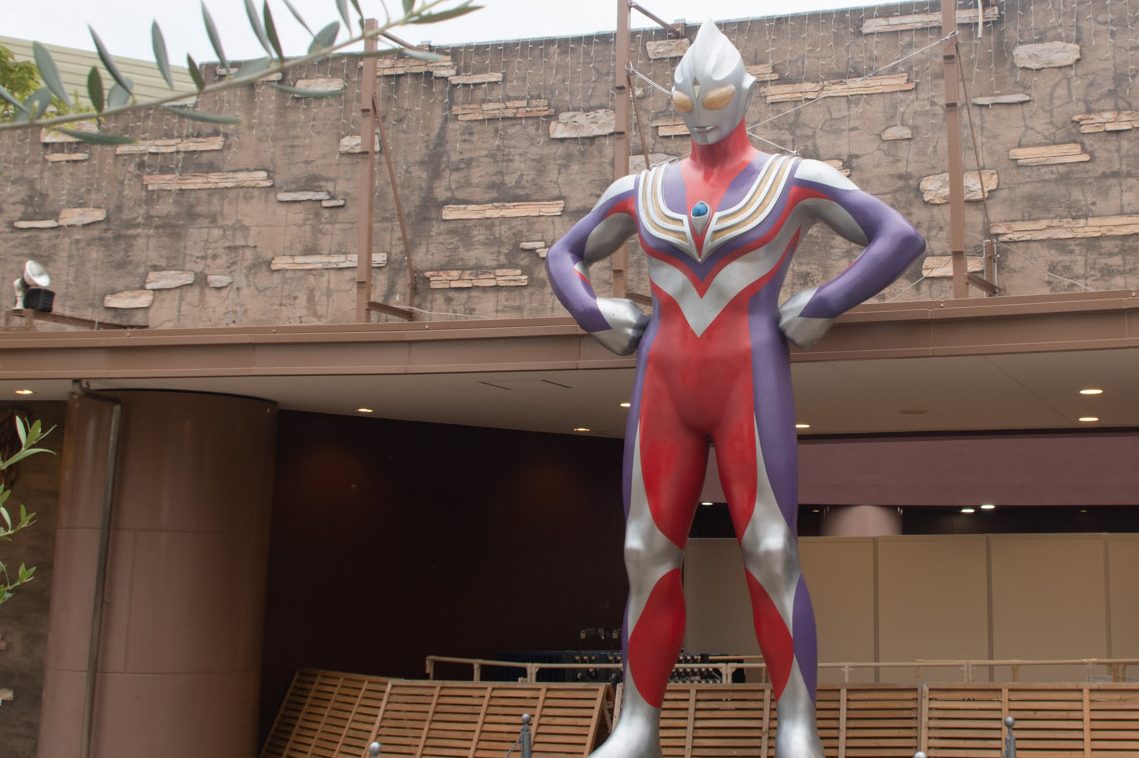 (※この巨大ティガ像、会場の外=園内に設置されているので、正面から拝みたい場合はひらパーへの入園が必要です。ご注意を!)