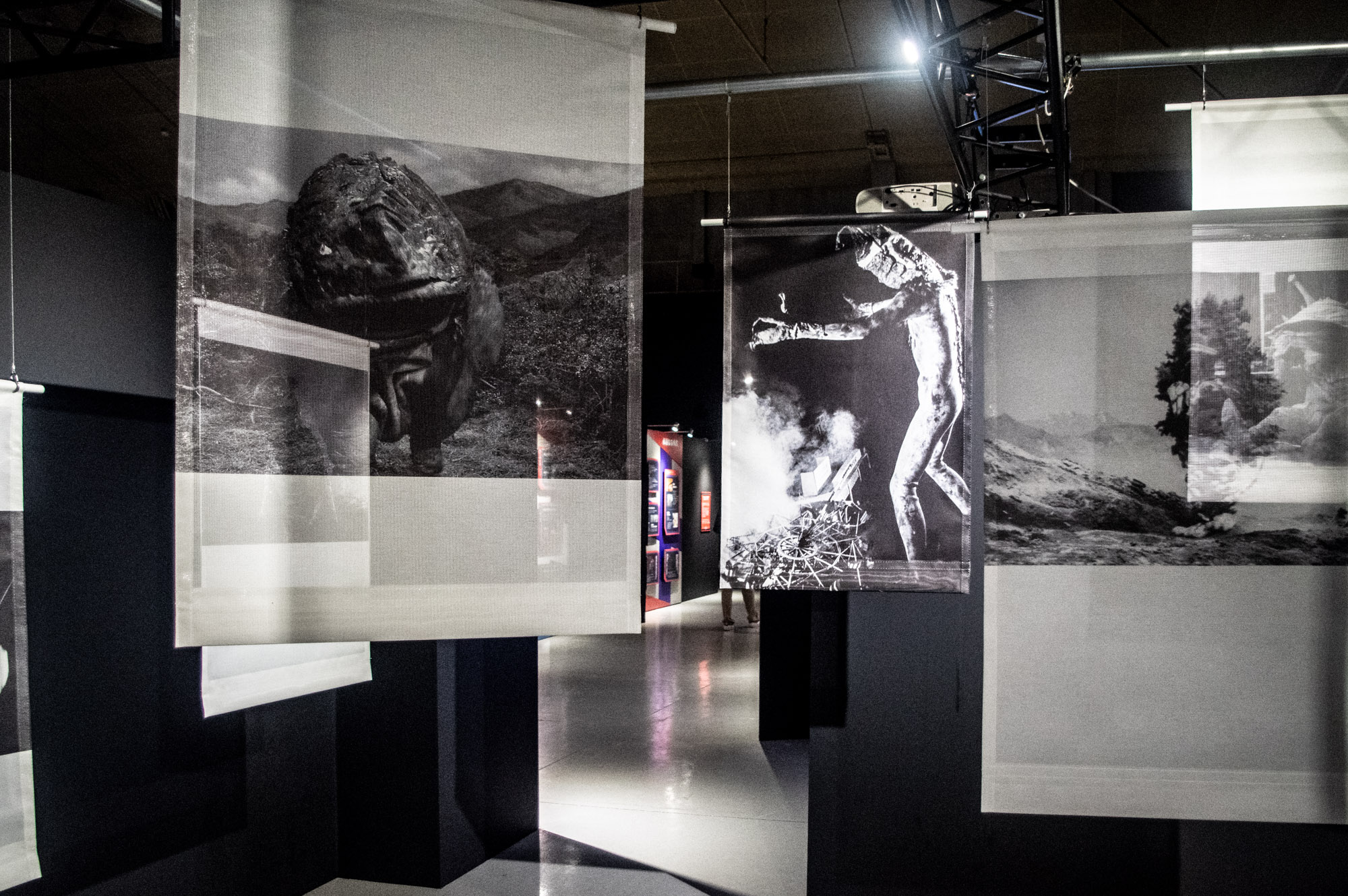 展示のクライマックスへと続く通路は、これまでの資料的な展示から一変。光と影が織りなす幻想的な空間「光の回廊」に。