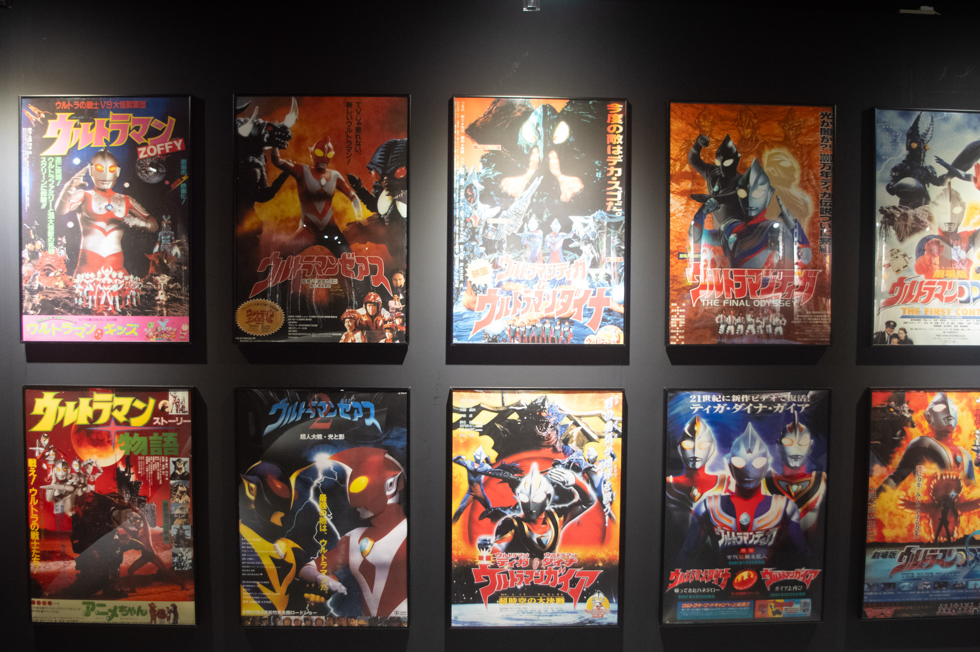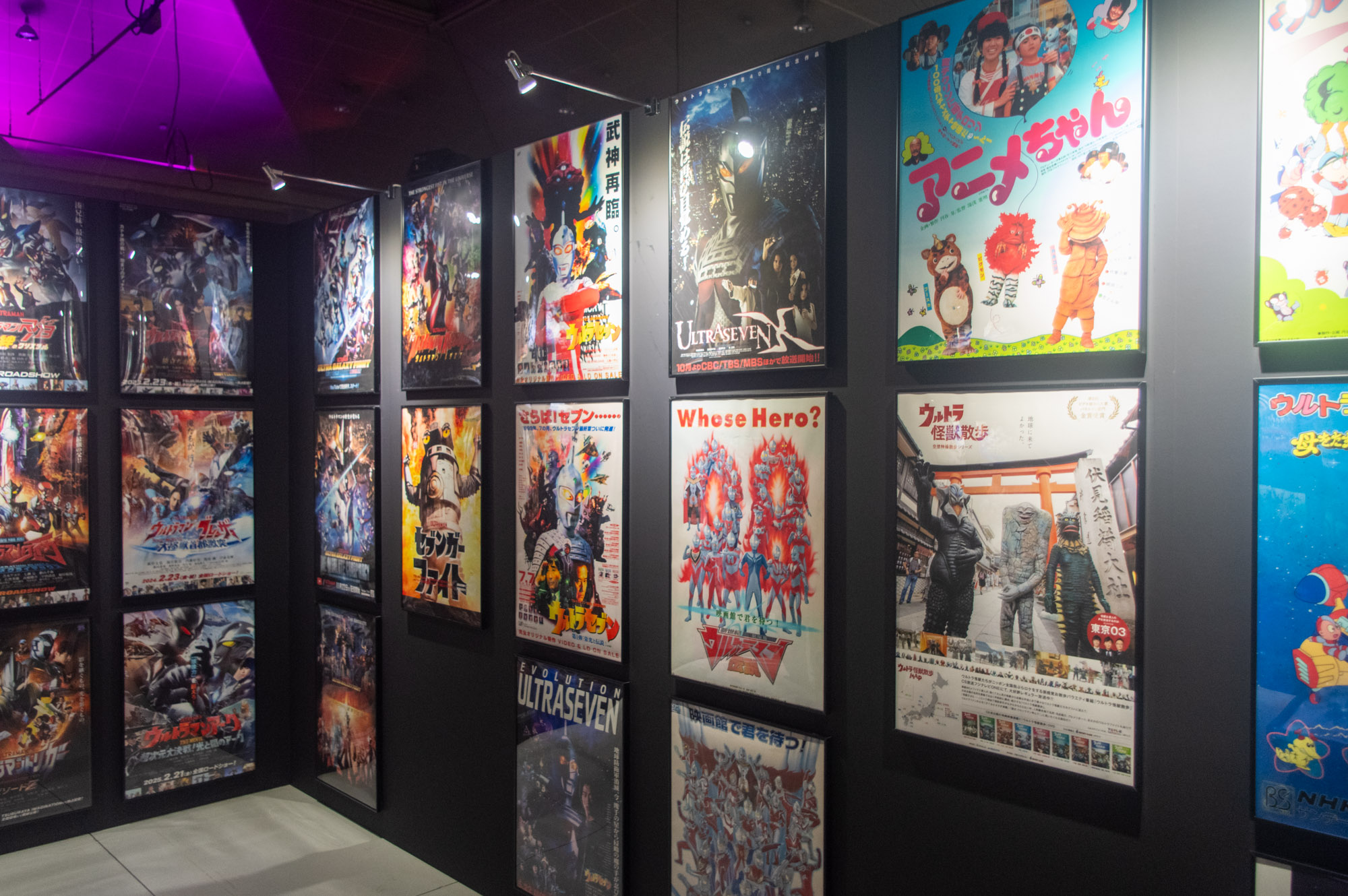 次に出てくるのは、テレビシリーズのみならず、劇場作品やオリジナルビデオ作品(OVA)、配信作品にアニメーション作品まで、歴代のポスターが壁一面にずらっと並ぶエリア!!