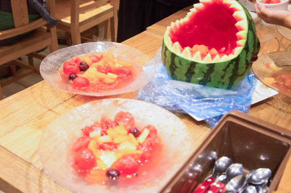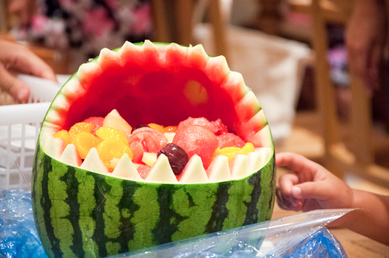 サメの口の中には、食べやすくカットされたフルーツがたくさん盛り付けられていました!