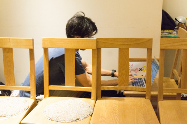 こちらはお仕事中のカトゥー。バリケードの中でこっそりパソコンをしてます。