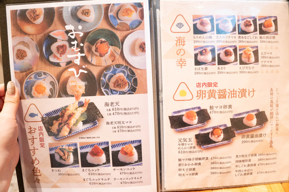 わ!ちょい飲みセットとかもあるんや。しかもおむすび以外にもめちゃめちゃメニューあるやん…!こりゃ意外でした。