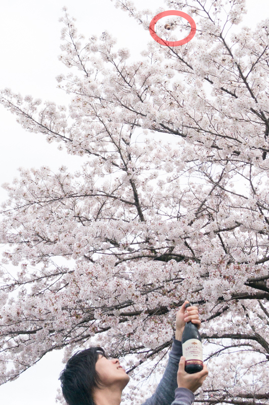 大西さん:じゃぁ桜に当たらない場所でやりましょう。成功するかどうかは、運次第やけど!