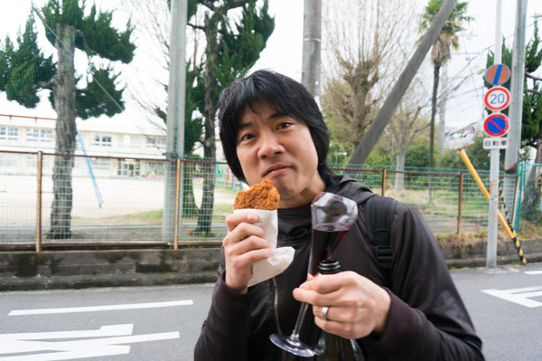 大西さん:ワインって食中酒やと思うわ〜!食べ物と組み合わせるとより魅力が増す!桜見ながら藤阪ワイン飲みながらの肉屋のミンチカツ。