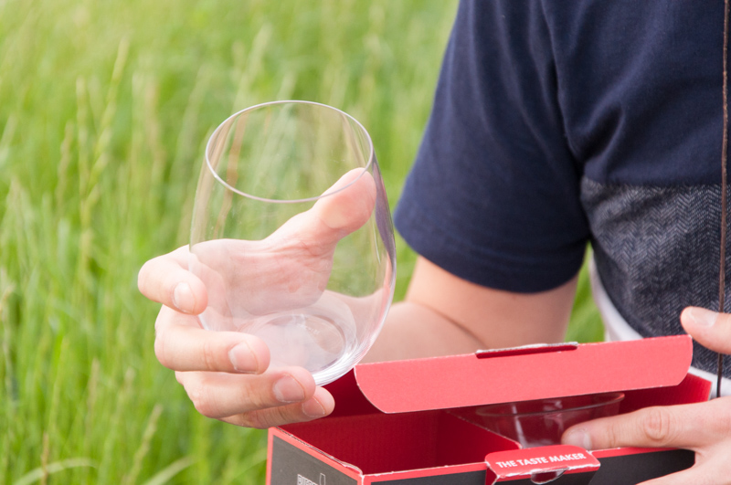 ベッドに横になりながらでも飲めるって言うカジュアルグラス。世界で大ヒットしてる大人気のグラスやねん!前のワインはどっしりガッツリ系やってんけど今日はカジュアルなワインなのでこっちにしてみました。