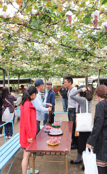 (牛奥第一葡萄酒ワイナリーの近くにある醸造責任者のおっちゃんのご自宅。家の庭全体にぶどうの棚があるワイナリーよりも広いステキなご自宅です)