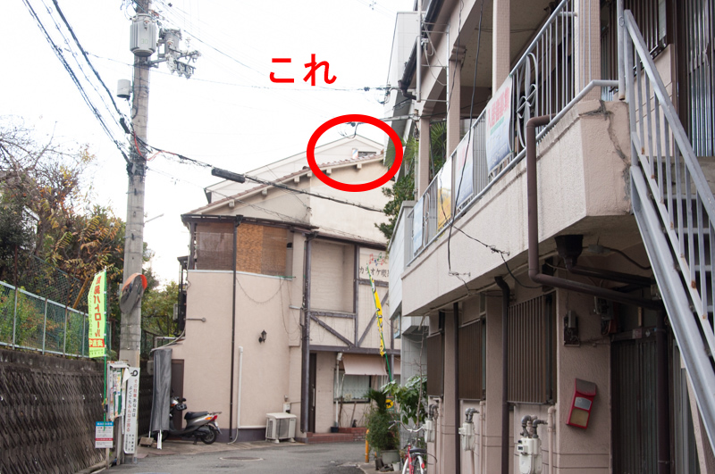 大西さん:うわ、散髪屋の赤と青と白のくるくる回ってるやつ、あんな高いところについてるでー!