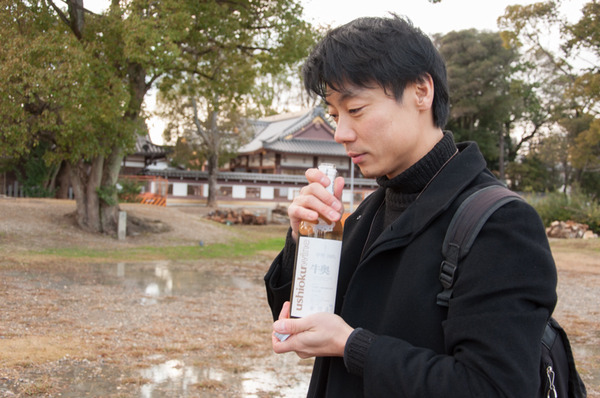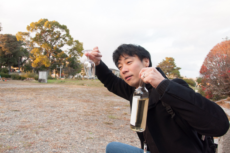 大西さん:ちゃんとアルコール度数13%のちゃんとした酒やねんけどクイクイ行けるよな。だってもう半分飲んでるで、ここだけで(笑)このクソ寒い中で!