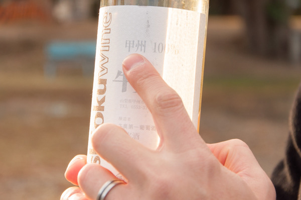 まずは見た目シンプル。日本の山梨県のワインやねんけど、この前山梨にワイナリーツアーに行って10社くらい回ってんけど、一番衝撃的やったワイナリーのワインやねん!しかも一番安い!