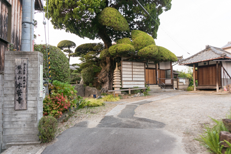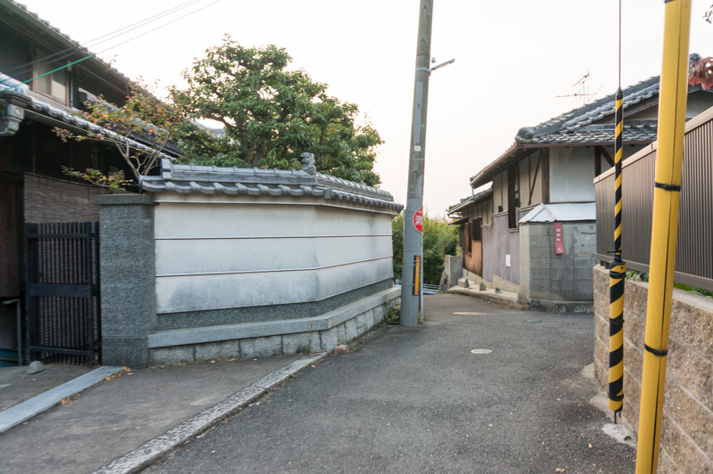 ー 細い古い村の中を進みます。瓦屋根の家が並んでいます。