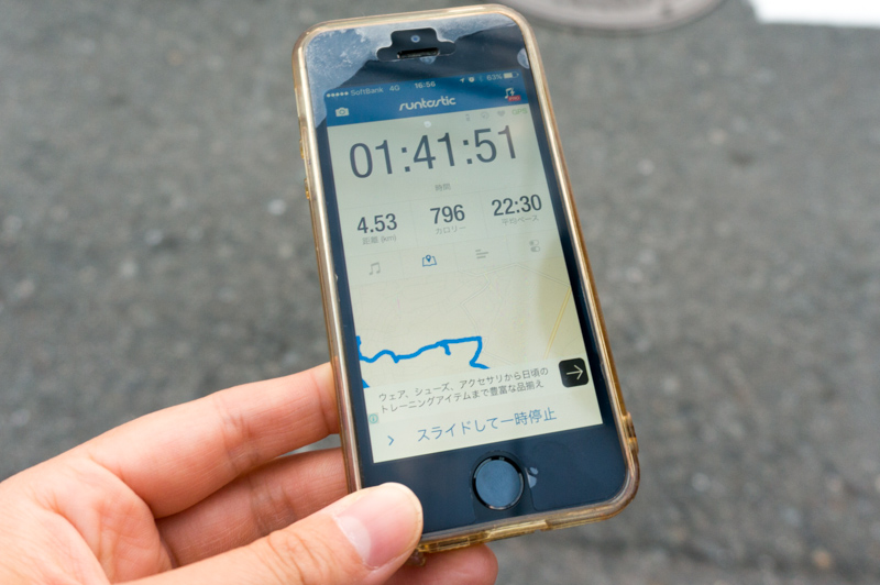 歩いた時間は1時間41分51秒。消費カロリーは796キロカロリー。