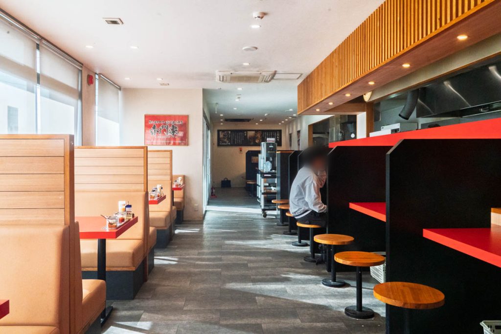 店内はカウンター席とテーブル席。お子さん用の椅子の用意もあって、家族でも利用しやすい店舗です。