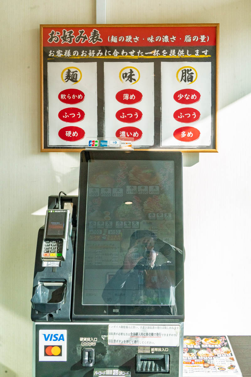 注文は食券制。かたさ、濃さ、脂の量を選ぶことができます。